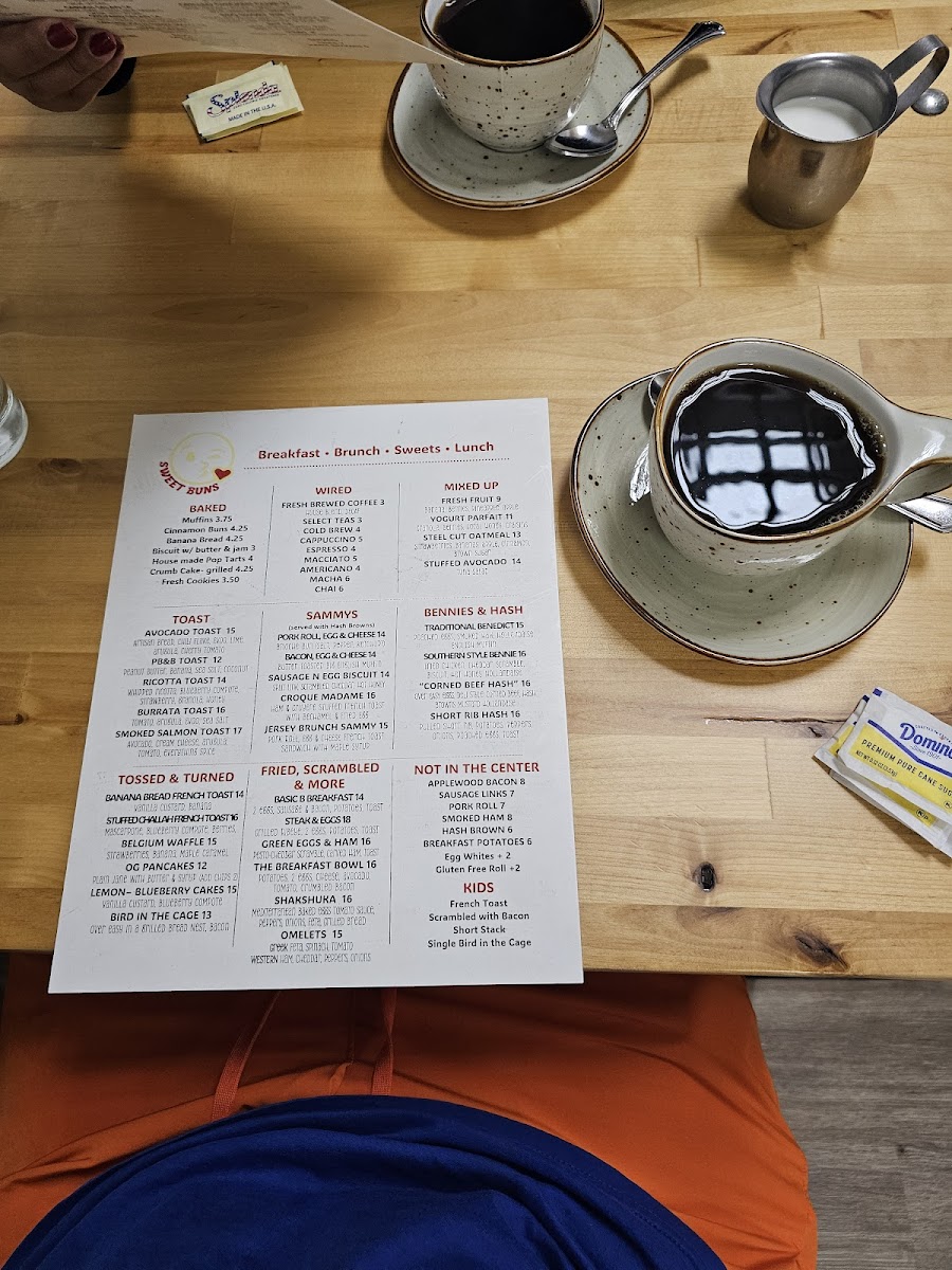 The menu offers a variety of options primarily focused on breakfast and light meals, available for casual dining. It is structured into several groups that cater to different tastes and preferences.
